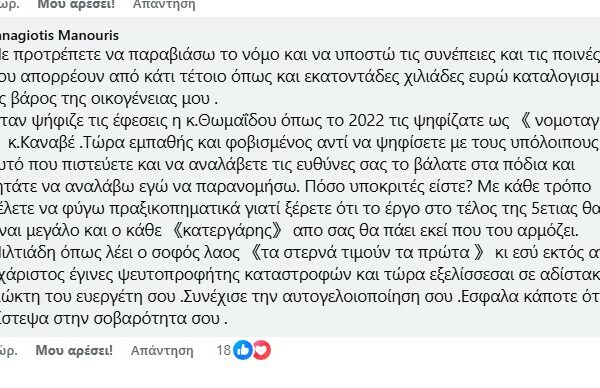 Μανούρης σε Καναβό: εκτός από αχάριστος έγινες ψευδοπροφήτης καταστροφών και τώρα εξελίσσεσαι σε αδίστακτο διώκτη του ευεργέτη σου