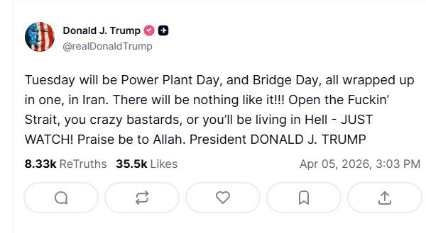 Συμπτώματα απόγνωσης διακρίνουν πολλοί στην υστερική ανάρτηση του Ντόναλντ Τραμπ που απειλεί το Ιράν με ορολογία πεζοδρομίου για τα στενά του Ορμούζ. Η τεράστια οικονομική ζημιά στην παγκόσμια οικονομία και η επιμονή των Ιρανών να αφήνουν να περνούν από τα χωρικά τους ύδατα μόνο πλοία από φιλικές χώρες και με την καταβολή διοδίων, έχει δημιουργήσει…