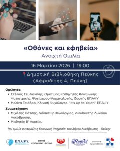 Η 2η Συνάντηση της Ακαδημίας Γονέων θα πραγματοποιηθεί την Τετάρτη 14 Φεβρουαρίου 2024, ώρα 18:15, με θέμα: «Ψηφιακή ζωή και influencing», με ομιλητές: