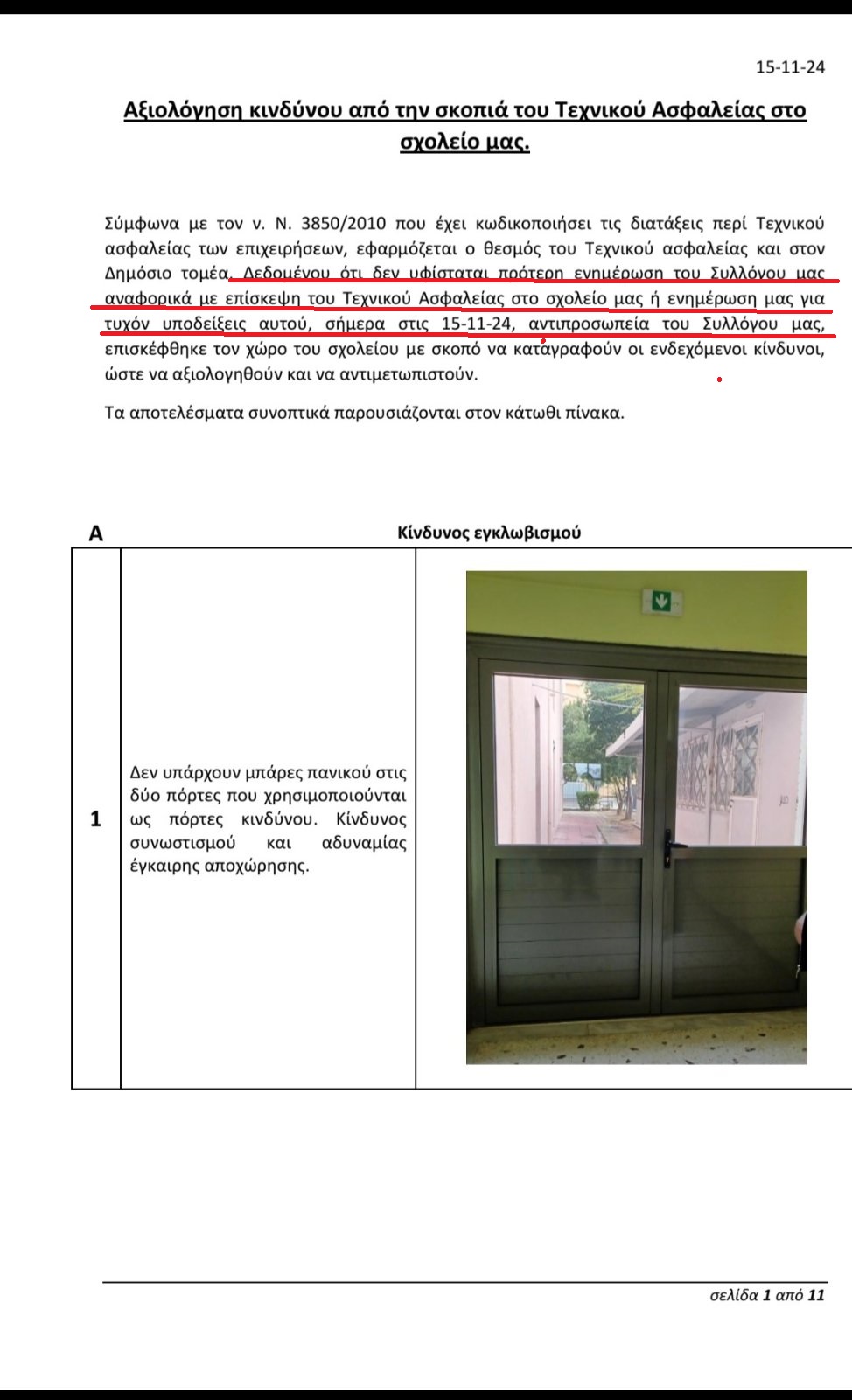 Ούτε μια, ούτε δυο αλλά τριάντα (30) παρατηρήσεις για ενδεχόμενους κινδύνους ασφαλείας περιέχει η έκθεση τεχνικού ασφαλείας για το 1ο Γυμνάσιο Μεταμόρφωσης.
