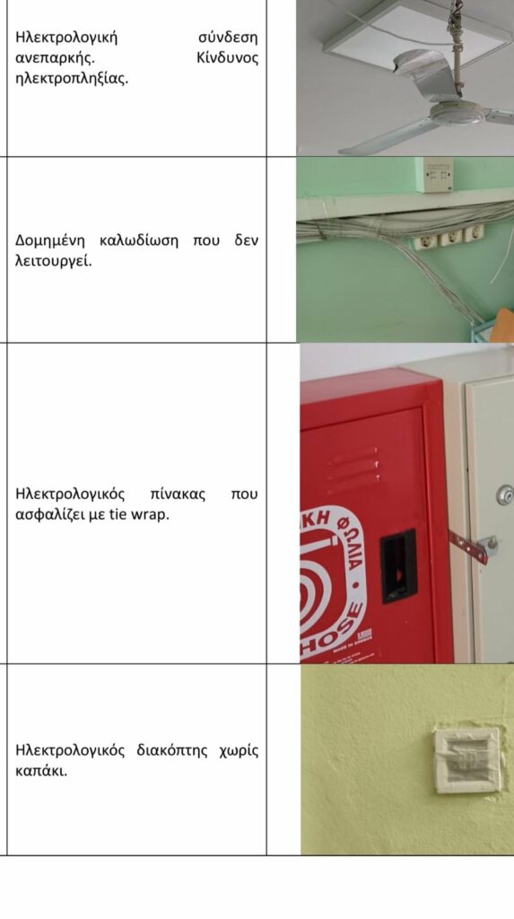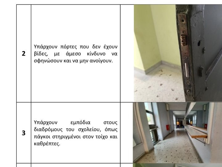 Η έκθεση αποτελεί καμπανάκι κινδύνου για τη δημοτική αρχή, αφού δείχνει ένα σχολείο με πολλά – μικρά ή μεγάλα – θέματα ασφαλείας, σε πολλά σημεία.