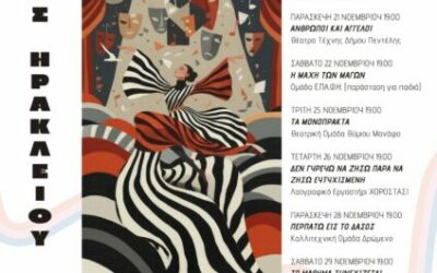 Το 4 ο Φεστιβάλ Ερασιτεχνικού Θεάτρου του Δήμου Ηρακλείου Αττικής έρχεται φέτος από τις 16 έως τις 30 Νοεμβρίου για να παρουσιάσει στο κοινό παραστάσεις από ερασιτεχνικούς θιάσους της Αττικής, στην θεατρική αίθουσα του δημοτικού Πολιτιστικού Πολύκεντρου «Ηλέκτρα Αποστόλου» (Κουντουριώτου και Νεότητος, Ηράκλειο Αττικής, υπόγειο) με ελεύθερη είσοδο για όλες και όλους. Αρχή την Κυριακή … Συνεχίστε να διαβάζετε το 4ο Φεστιβάλ Ερασιτεχνικού Θεάτρου στον Δήμο Ηρακλείου Αττικής.
