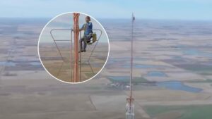 Ένας άνδρας από τη Νότια Ντακότα στις ΗΠΑ εξακολουθεί να κατέχει μια εργασία υψηλού κινδύνου: να σκαρφαλώνει σε έναν γιγάντιο πύργο τηλεπικοινωνιών κάθε έξι μήνες