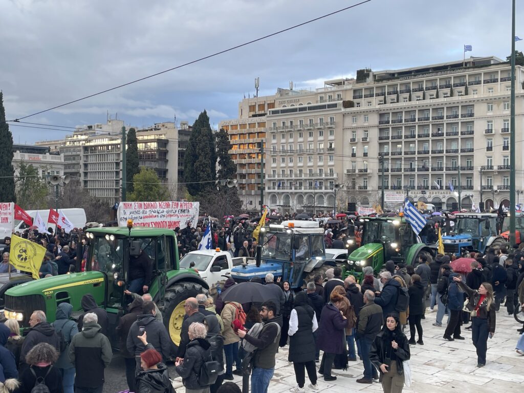 Στο Σύνταγμα η υποδοχή των σωματείων και των φοιτητικών συλλόγων ήταν ιδιαίτερα δυναμική με συνθήματα, χειροκροτήματα και καπνογόνα, επιβεβαιώνοντας τη μεγάλη στήριξη προς τον αγώνα των αγροτών. Η συγκέντρωση, μάλιστα, διήρκησε μέχρι το βράδυ, παρά το ότι αρκετοί διαδηλωτές βρίσκονταν στον δρόμο από το μεσημέρι, λόγω της διαδήλωσης για τις Συλλογικές Συμβάσεις Εργασίας και τη συμφωνία Κεραμέως – ΣΕΒ – ΓΣΕΕ.