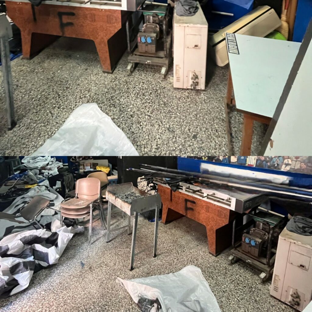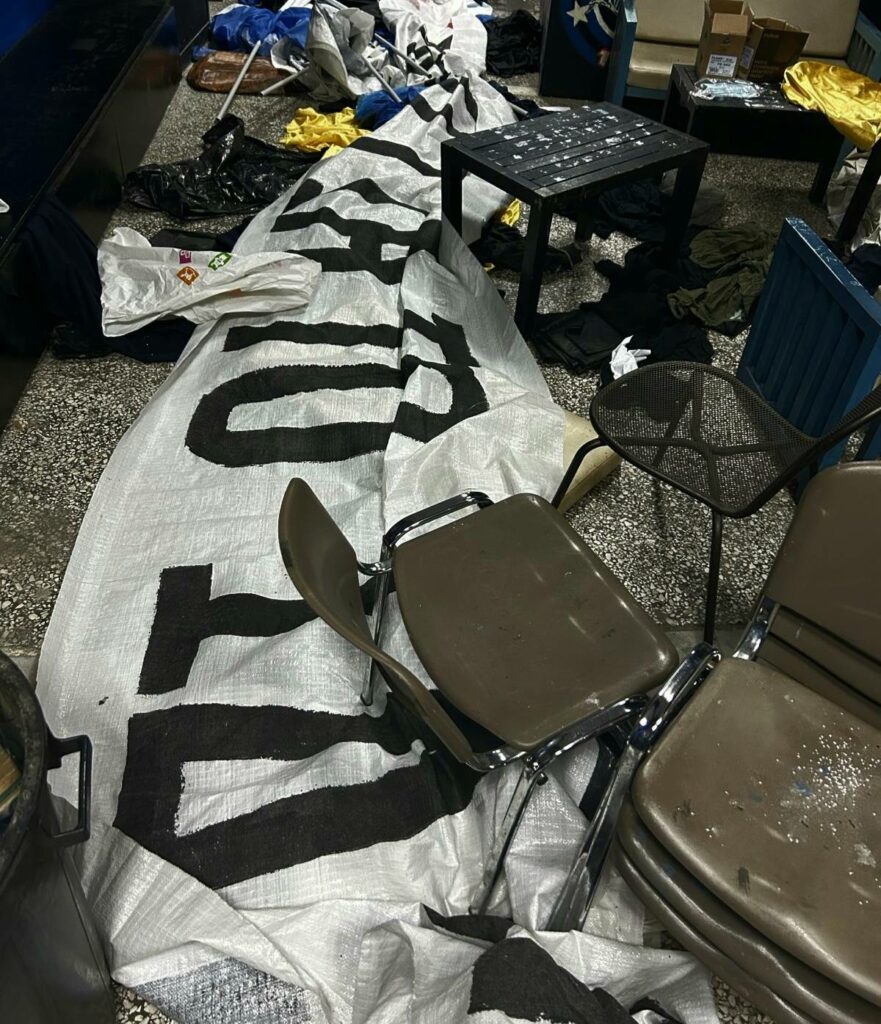 - Η αστυνομία κατά την διάρκεια του ελέγχου και της συλλογής διαφόρων αντικειμένων μέσα απο των χώρο προχώρησε και σε πράξεις που μόνο εκδίκηση και μένος μπορούν να δείξουν. Άλλωστε ειναι χρόνια γνωστή η στάση τους απέναντι στο οπαδικό μας κίνημα.
