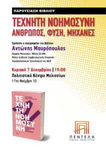 “Τεχνητή Νοημοσύνη: Άνθρωπος, Φύση, Μηχανές” – Παρουσίαση του βιβλίου του Αντ. Μαυρόπουλου από την “Πεντέλη – Πόλη Πρότυπο”