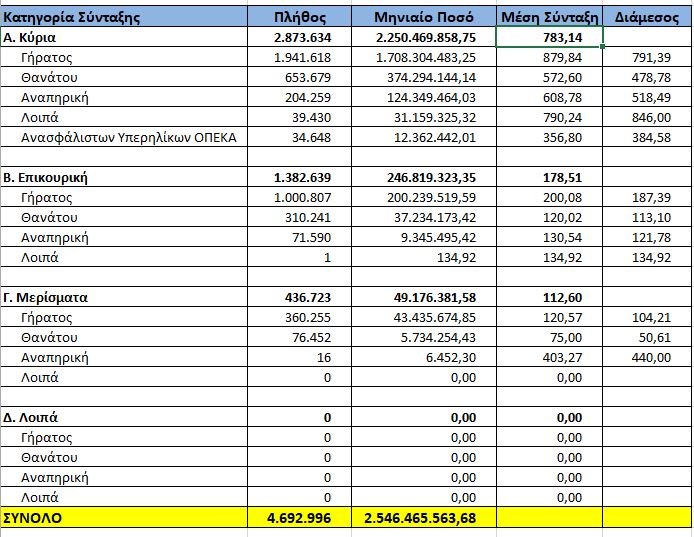 Λαμβάνοντας υπόψιν ότι πριν ένα χρόνο η μέση κύρια σύνταξη ανερχόταν σχεδόν στα 822 ευρώ, αμέσως φαίνεται ότι οι όποιες αυξήσεις δόθηκαν στις αρχές του έτους, όχι σε όλους αλλά σε όσους δεν είχαν προσωπική διαφορά, εξανεμίστηκαν.