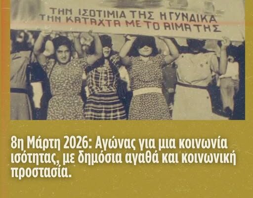Λαϊκή Ενότητα – Α.Α. για Παγκόσμια Ημέρα Γυναίκας: Αγώνας για μια κοινωνία ισότητας, με δημόσια αγαθά και κοινωνική προστασία