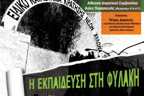 “Η εκπαίδευση στη φυλακή – Η εμπειρία του Αυλώνα”: Εκδήλωση του Δικτύου Αλληλεγγύης Αγίας Παρασκευής