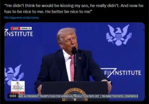 Ντ. Τραμπ: Ο ηγέτης της Σαουδικής Αραβίας «με φιλάει στον κώλο» Θα έπρεπε να ψέξουμε τον ανισόρροπο φασίστα για αυτό που είπε δημόσια, αλλά μάλλον ένα δίκιο το έχει! Τραμπ ξεφτιλίζει σε δημόσια θέα τον Σαουδάραβα