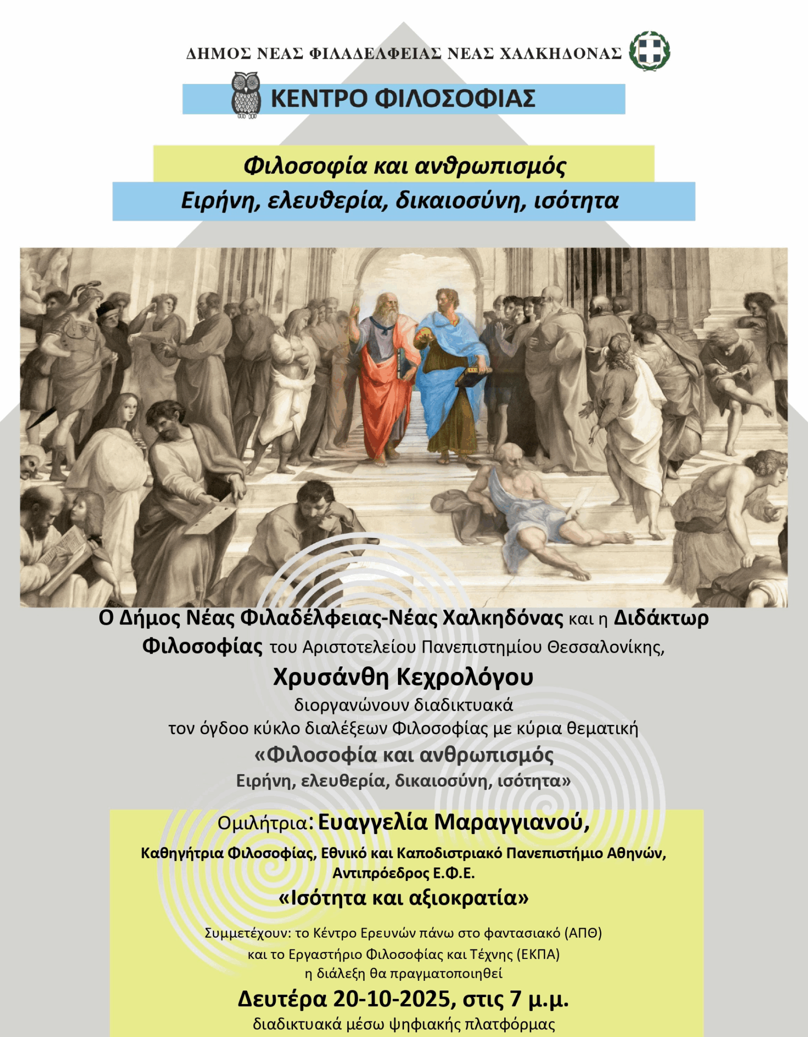 Ο Δήμος Νέας Φιλαδέλφειας – Νέας Χαλκηδόνας & η Διδάκτωρ Φιλοσοφίας του Αριστοτελείου Πανεπιστημίου Θεσσαλονίκης, Χρυσάνθη Κεχρολόγου,συνεχίζουν για όγδοο έτος τον κύκλο διαλέξεων με κυρία θεματική: