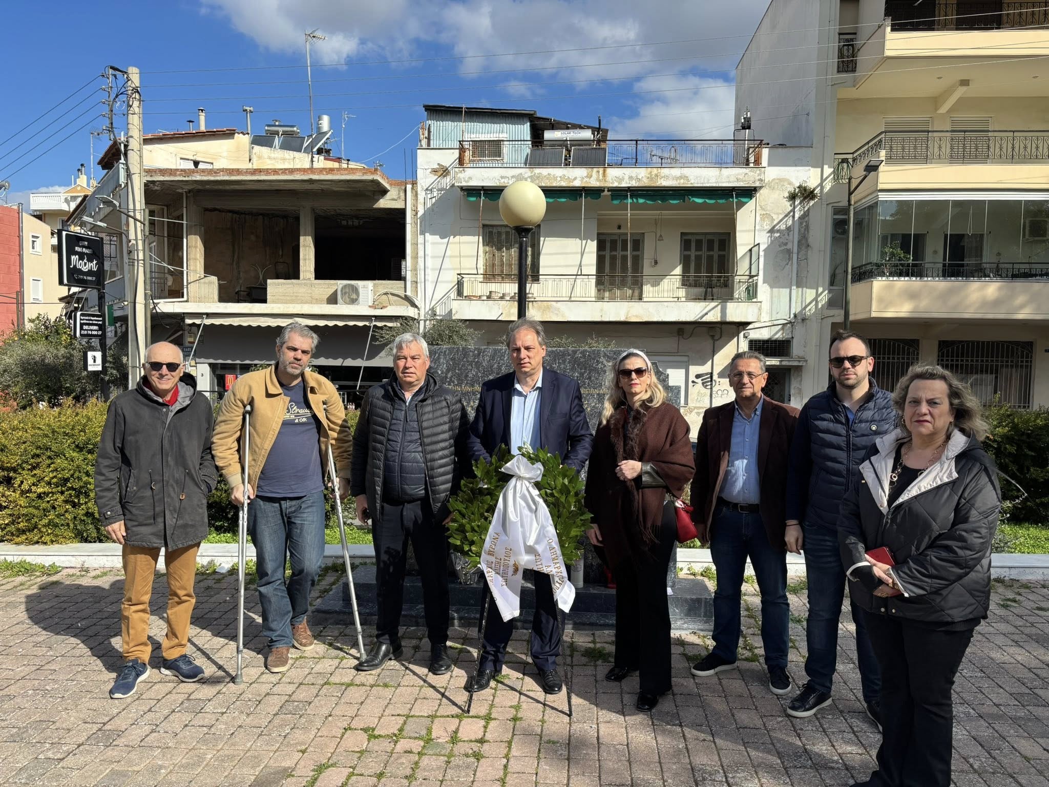 Ο Δήμαρχος Βύρωνα, Αλέξης Σωτηρόπουλος, μαζί με αντιδημάρχους και εντεταλμένους συμβούλους, κατέθεσε το Σάββατο, 28 Φεβρουαρίου 2026, στεφάνι στο μνημείο που βρίσκεται στην οδό Ταταούλων, αποτίοντας φόρο τιμής στη μνήμη των 57 συνανθρώπων μας που έχασαν άδικα τη ζωή τους στα Τέμπη.