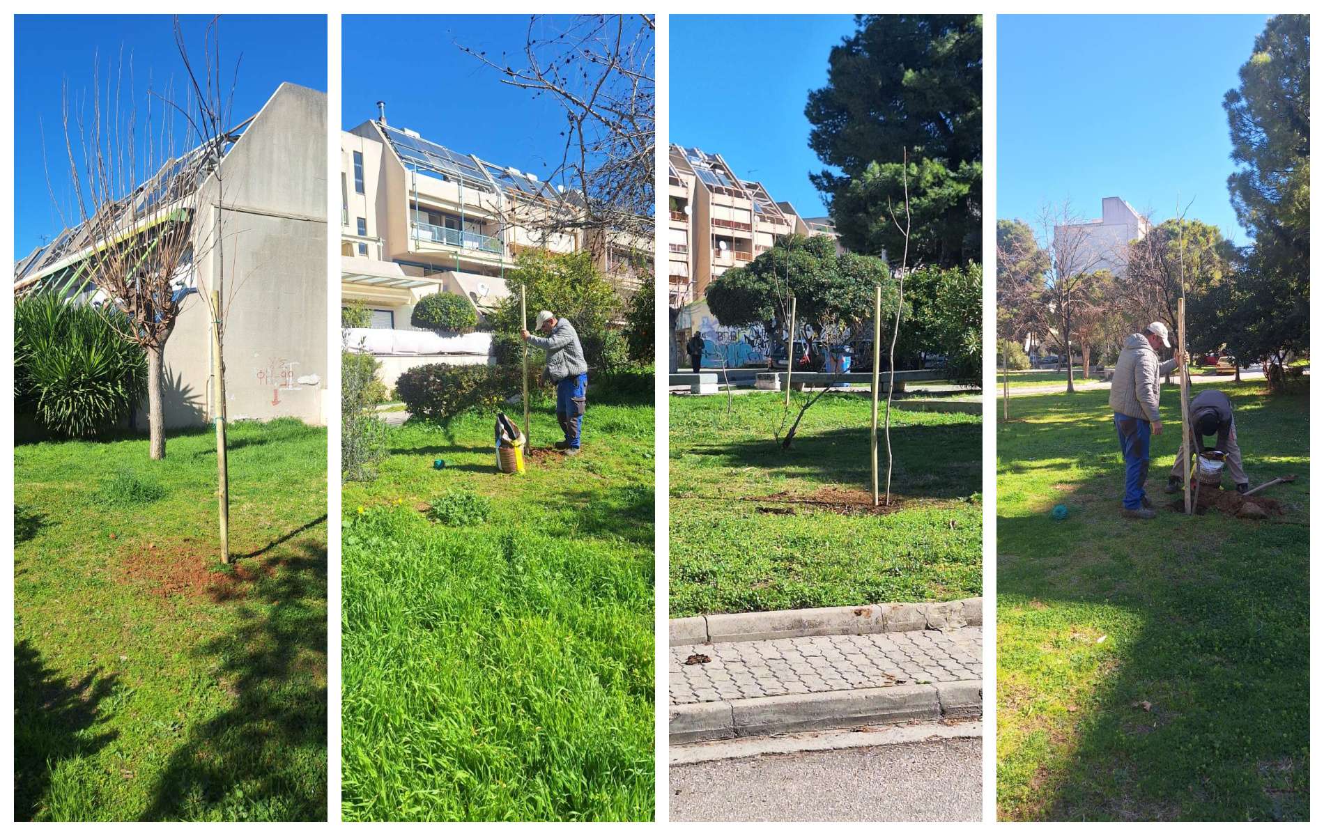 Με στόχο την ενίσχυση του πρασίνου και τη βελτίωση της ποιότητας ζωής των κατοίκων, πραγματοποιήθηκε δενδροφύτευση χθες στο Ηλιακό Χωριό, σε κοινόχρηστο χώρο της περιοχής.