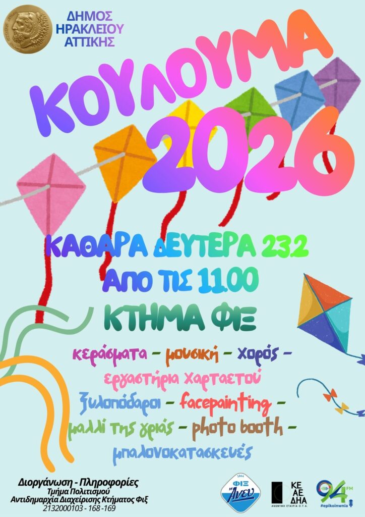 Στο Κτήμα Φιξ για να γιορτάσουν τα Κούλουμα καλεί ο Δήμος Ηρακλείου Αττικής τους κατοίκους της πόλης την Καθαρά Δευτέρα (23/02) από τις 11.00 το πρωί και μετά.