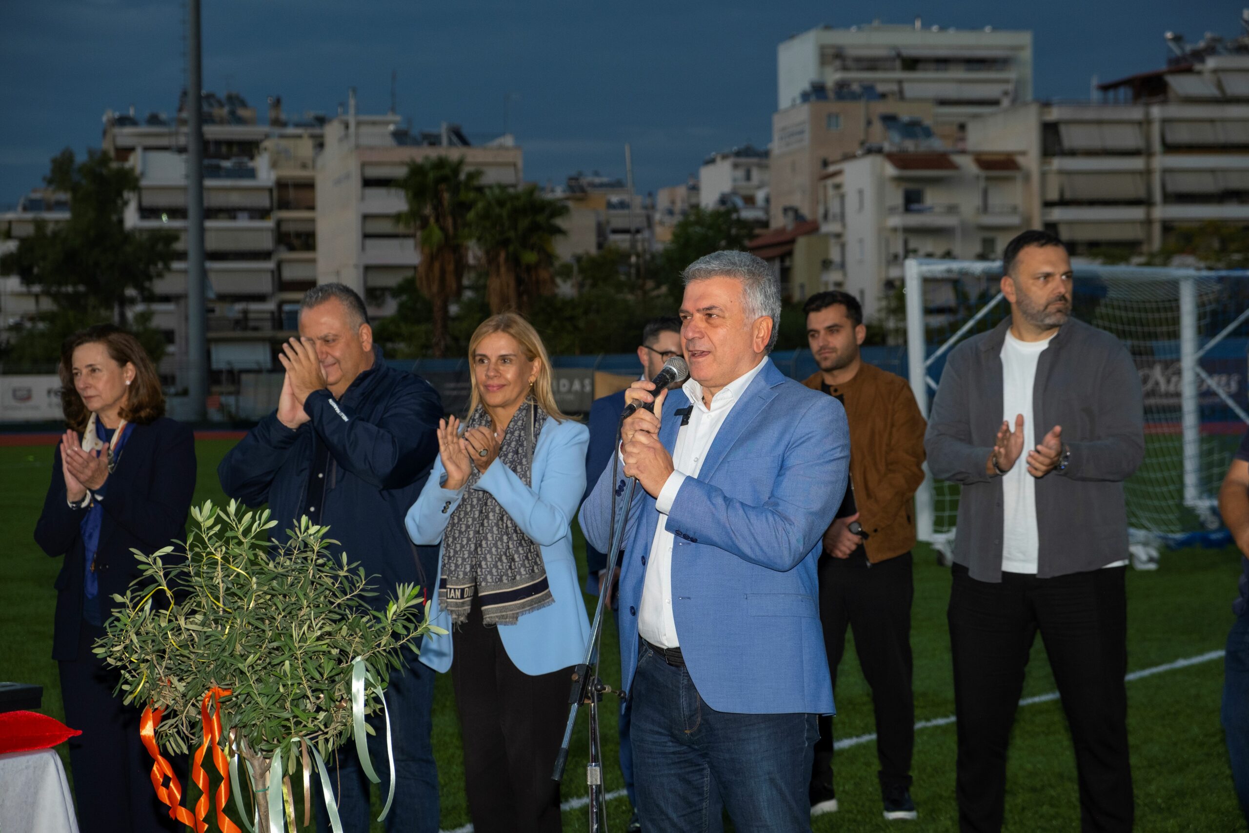 Στο χαιρετισμό στην εκδήλωση ο Δήμαρχος της πόλης μας Παναγιώτης Μανούρης αναφέρθηκε στο ιστορικό του Δημοτικού Σταδίου, το οποίο δημιουργήθηκε επί Δημαρχίας Χαραλάμπους ενώ οι κεκρίδες και τα αποδυτήρια έγιναν επί Δημαρχίας Γκότση.