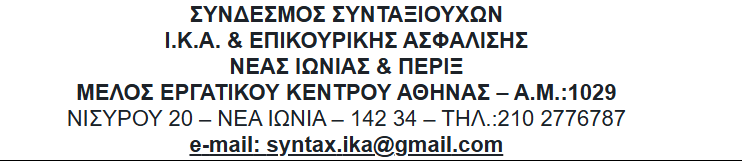 Αναλυτικά, η ανακοίνωση – πρόσκληση του Συνδέσμου Συνταξιούχων ΙΚΑ και Επικουρικής Ασφάλισης Ν. Ιωνίας και Πέριξ έχει ως εξής:
