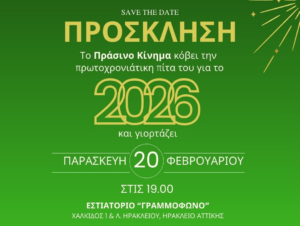 Κόβει την πίτα του το Πράσινο Κίνημα και καλεί τα μέλη και τους φίλους του στην εκδήλωση που θα πραγματοποιηθεί την Παρασκευή 20 Φεβρουαρίου, στις 7.00′ μ.μ.