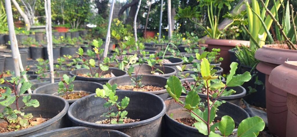 Ψευδοπιπεριά (Schinus molle) – μόσχευμα παραφυάδας, Χαρουπιά (Ceratonia siliqua) – από σπορά, λεμονιές, νεραντζιές, κουκουναριές, ακακίες Κωνσταντινουπόλεως, μιμόζες, μουριές