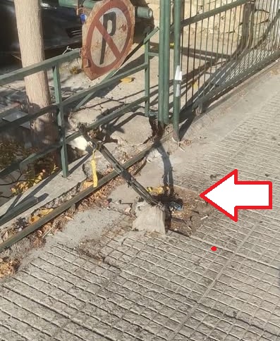 Καλώδιο εξέχει από πρώην κολώνα φωτισμού, η οποία έχει καταστραφεί στην οδό Νεότητος στο Ηράκλειο Αττικής.