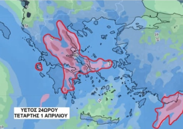 Β. Την Πέμπτη (02-04-26) ισχυρές βροχές και καταιγίδες προβλέπονται: