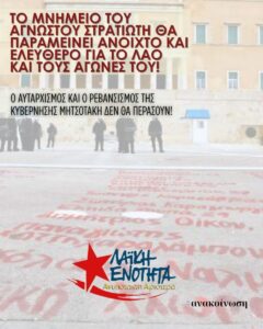 Λαϊκή Ενότητα: Το Μνημείο του Άγνωστου Στρατιώτη θα παραμείνει ανοιχτό για το λαό και τους αγώνες του!