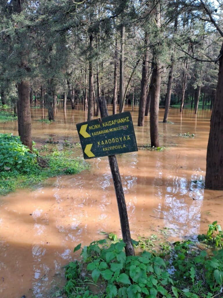Τραβηγμένες την 23/1/2026 στον Κουταλά, λίγα μέτρα πάνω από τα γήπεδα του Βύρωνα στον Υμηττό, όπου δημιουργήθηκε μια τεραστίων διαστάσεων “λίμνη” την οποία το έδαφος και τα δέντρα που αποψιλώθηκαν από το Antinero αδυνατούν να απορροφήσουν, οι φωτογραφίες αυτές είναι σοκαριστικές για όποιον έχει έστω και στοιχειώδεις γνώσεις για τα δάση και τις ωφέλειές τους.