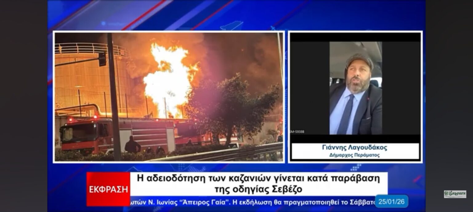Τον μεγάλο κίνδυνο που αποτελούν τα καζάνια των εταιρειών πετρελαιοειδών για το Πέραμα τόνισε σε συνεντευξή του στο Βασίλη Καραβάκο ο Δήμαρχος Περάματος Γιάννης Λαγουδάκος. Η πρόσφατη πυρκαγιά σε σωληνώσεις σε εταιρία πετρελαιοειδών ανέδειξε τον τεράστιο κίνδυνο που ελλοχεύει τόσο για τους 50.000 κατοίκους του Περάματος, όσο και για τους 10.000 εργαζόμενους στη Ζώνη και … Συνεχίστε να διαβάζετε το Γ. Λαγουδάκος: Σε περίπτωση έκρηξης των καζανιών θα έχουμε χιλιάδες απώλειες στο Πέραμα (συνέντευξη).