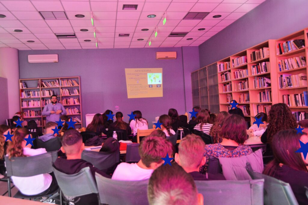 Η επίσκεψη γνωριμίας με τους χώρους και τις δραστηριότητες της Βιβλιοθήκης συνδυάστηκε με τη δράση «Όχι στο κάπνισμα – Ναι στη ζωή», όπου παρουσιάστηκε η ενότητα Καπνίσματος – Ατμίσματος του Εκπαιδευτικού Προγράμματος Αγωγής Υγείας Med School του Εργαστηρίου Φαρμακολογίας της Ιατρικής Σχολής του Αριστοτελείου Πανεπιστημίου Θεσσαλονίκης.