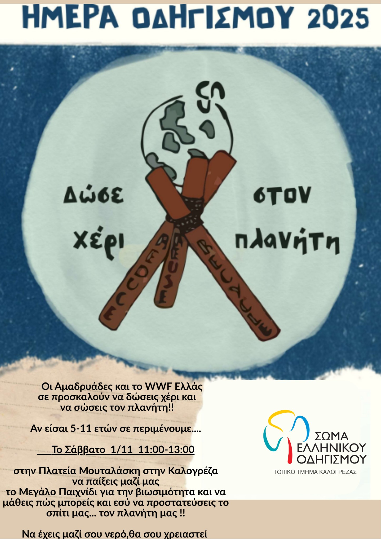 Με αφορμή την Ημέρα Οδηγισμού 2025, το Τοπικό Τμήμα Καλογρέζας του Σώματος Ελληνικού Οδηγισμού και το WWF Ελλάς διοργανώνουν μια ξεχωριστή δράση με σύνθημα «Δώσε χέρι στον πλανήτη».