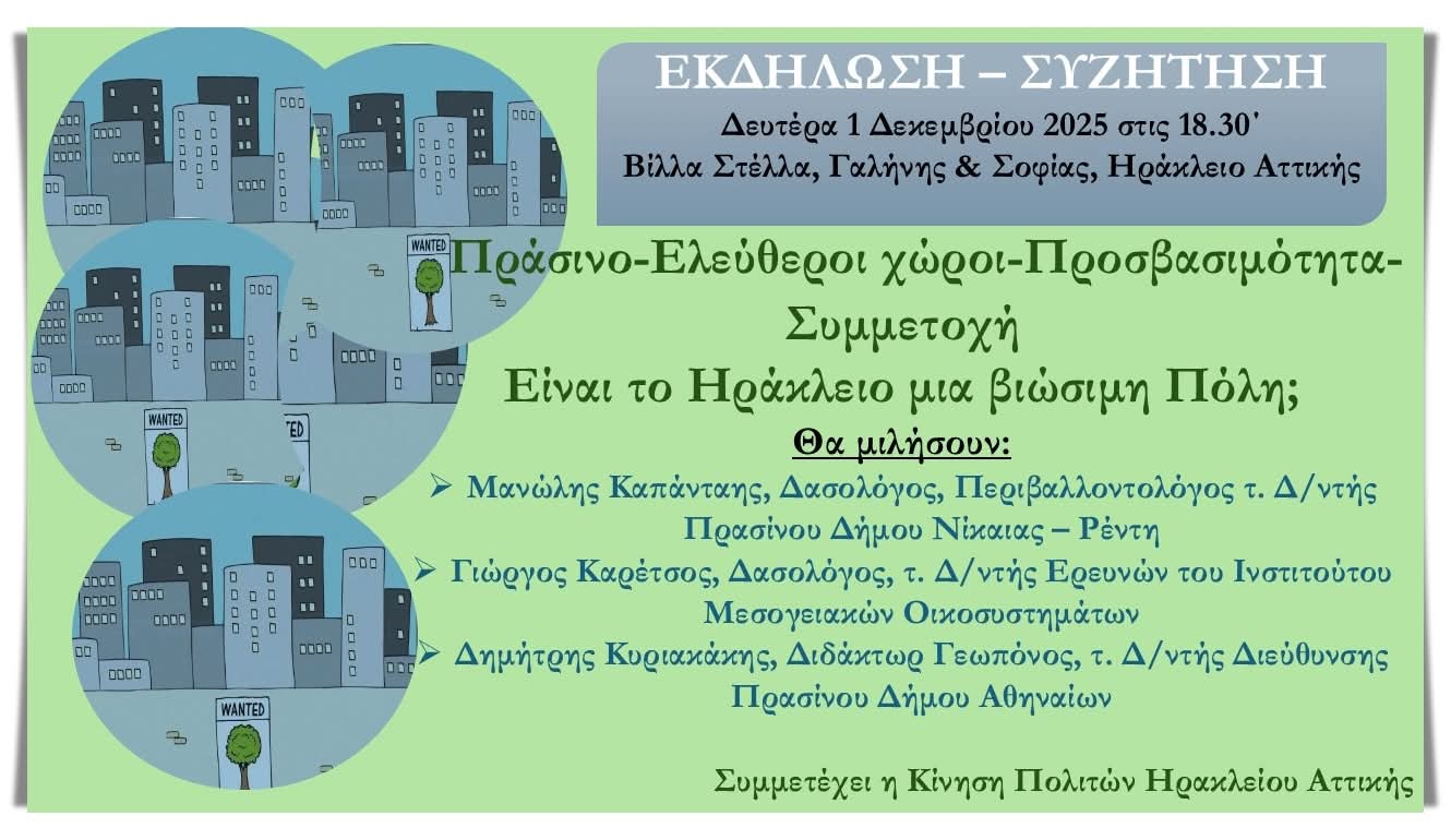 Ηράκλειο: Εκδηλωση για το πράσινο. Βίλα Στέλλα, Δευτέρα 01.12