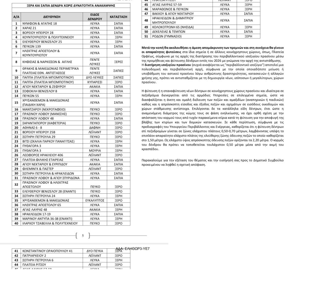 Με απόφαση της δημοτικής επιτροπής του Δήμου Ηρακλείου κόβονται 51 δένδρα ως “ξερά και επικίνδυνα”.