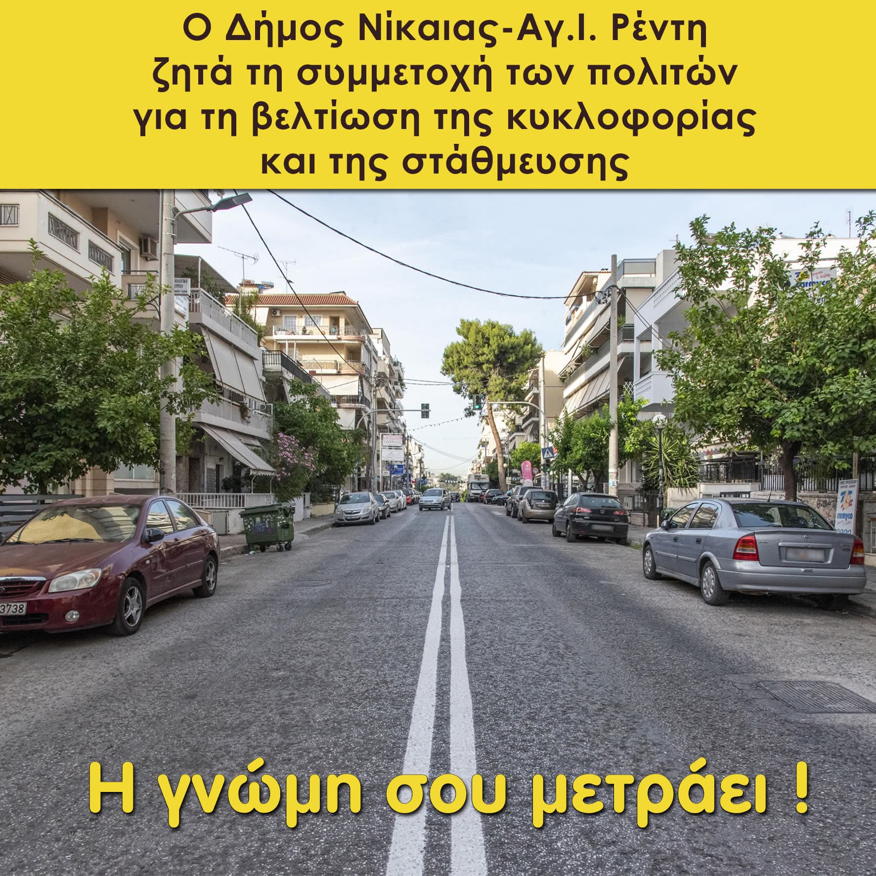 Κυκλοφοριακή μελέτη και μελέτη στάθμευσης εκπονεί ο Δήμος Νίκαιας – Αγ. Ι. Ρέντη και ζητά τη συμμετοχή των πολιτών με τη συμπλήρωση ερωτηματολογίου.