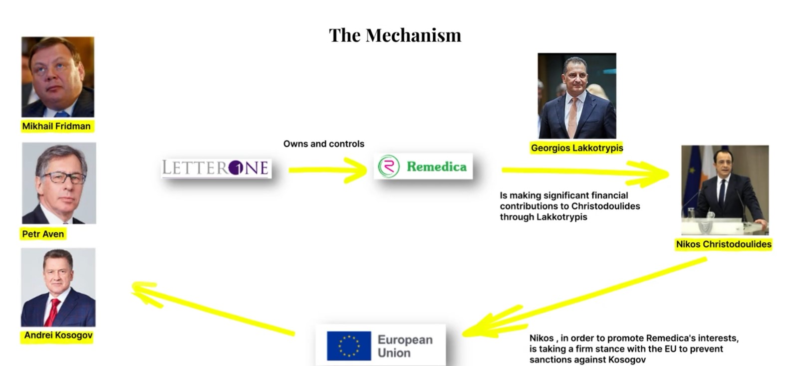 Ένας μηχανισμός εξυπηρετήσεων επιχειρηματιών, εταιριών, ακόμα και παράκαμψης κυρώσεων με το αζημίωτο, ο οποίος περιγράφεται αναλυτικά από τους πρωταγωνιστές του στην κάμερα, φυσικά εν αγνοία τους.