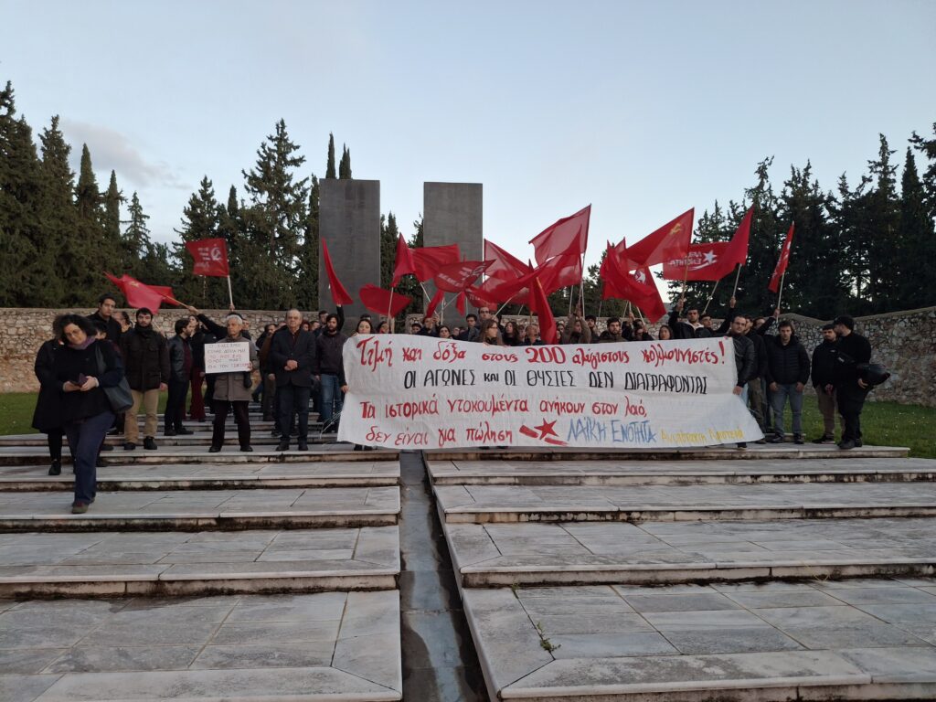 “Η μνήμη δεν μπαίνει σε δημοπρασία – Να ανακτηθούν οι φωτογραφίες των 200 εκτελεσμένων αγωνιστών κομμουνιστών της Καισαριανής και να γίνουν κτήμα του λαού”, ζητά με ανακοίνωση της η Λαϊκή Ενότητα – Ανυπότακτη Αριστερά με αφορμή την κοινοποίηση και προσπάθεια δημοπρασίας, μέσω διεθνούς διαδικτυακού τόπου δημοπρασιών, φωτογραφιών που απαθανατίζουν τις τελευταίες στιγμές των 200 ηρώων κομμουνιστών που εκτελέστηκαν την πρωτομαγιά του 1944 από τους ναζί. “Οι συγκεκριμένες φωτογραφίες δεν είναι συλλεκτικό υλικό. Δεν είναι εμπόρευμα προς πώληση στον πλειοδότη. Είναι αναπόσπαστο κομμάτι της συλλογικής ιστορικής μνήμης και της πολιτιστικής κληρονομιάς του λαού μας”, αναφέρει χαρακτηριστικά η ανακοίνωση του γραφείου τύπου.