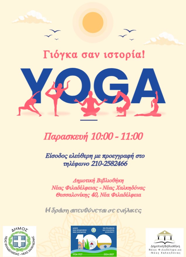 Ο δήμος Νέας Φιλαδέλφειας-νέας Χαλκηδόνας σε συνεργασία με την κυρία Άννα – Μαρία Λούτατ διοργανώνει μαθήματα γιόγκα.