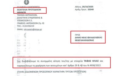 Στον εισαγγελέα έφτασε η – πρακτικά – άρνηση της δημοτικής αρχής του Δήμου Ν. Φιλαδέλφειας – Ν. Χαλκηδόνας να δώσει τα έγγραφα που ζητήθηκαν από τον δημοτικό σύμβουλο Ηλία Τάφα για τον Κένταυρο αλλά και για ακόμα δύο υποθέσεις και φυσικά διατάσσει τη χορήγησή τους: Η άρνηση της δημοτικής αρχής γεννά πολλά ερωτηματικά για τη … Συνεχίστε να διαβάζετε το Ν. Φιλαδέλφεια: Διατάσσει να δώσουν τα στοιχεία ο εισαγγελέας.