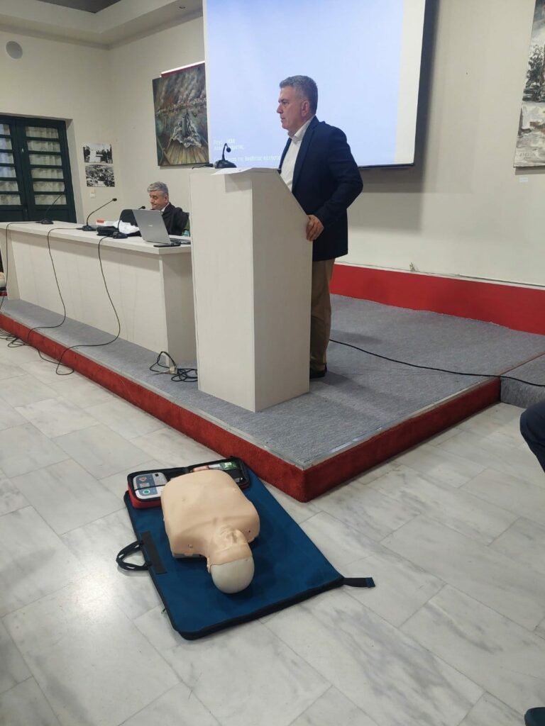 “Φροντίζουμε για την ασφάλεια των πολιτών στους δημόσιους χώρους γι αυτό και προχωρήσαμε στην τοποθέτηση απινιδωτών σε 4 πλατείες. Η σημερινή εκπαίδευση έχει ως στόχο να είναι όσο το δυνατόν περισσότεροι οι πολίτες που γνωρίζουν να τα βασικά στην ΚΑΡΠΑ (Καρδιοπνευμονική Αναζωογόνηση) και στη χρήση απινιδωτή.
