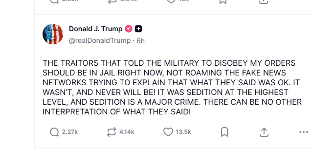 Ανάρτηση στο λογαριασμό του στο Truth Social