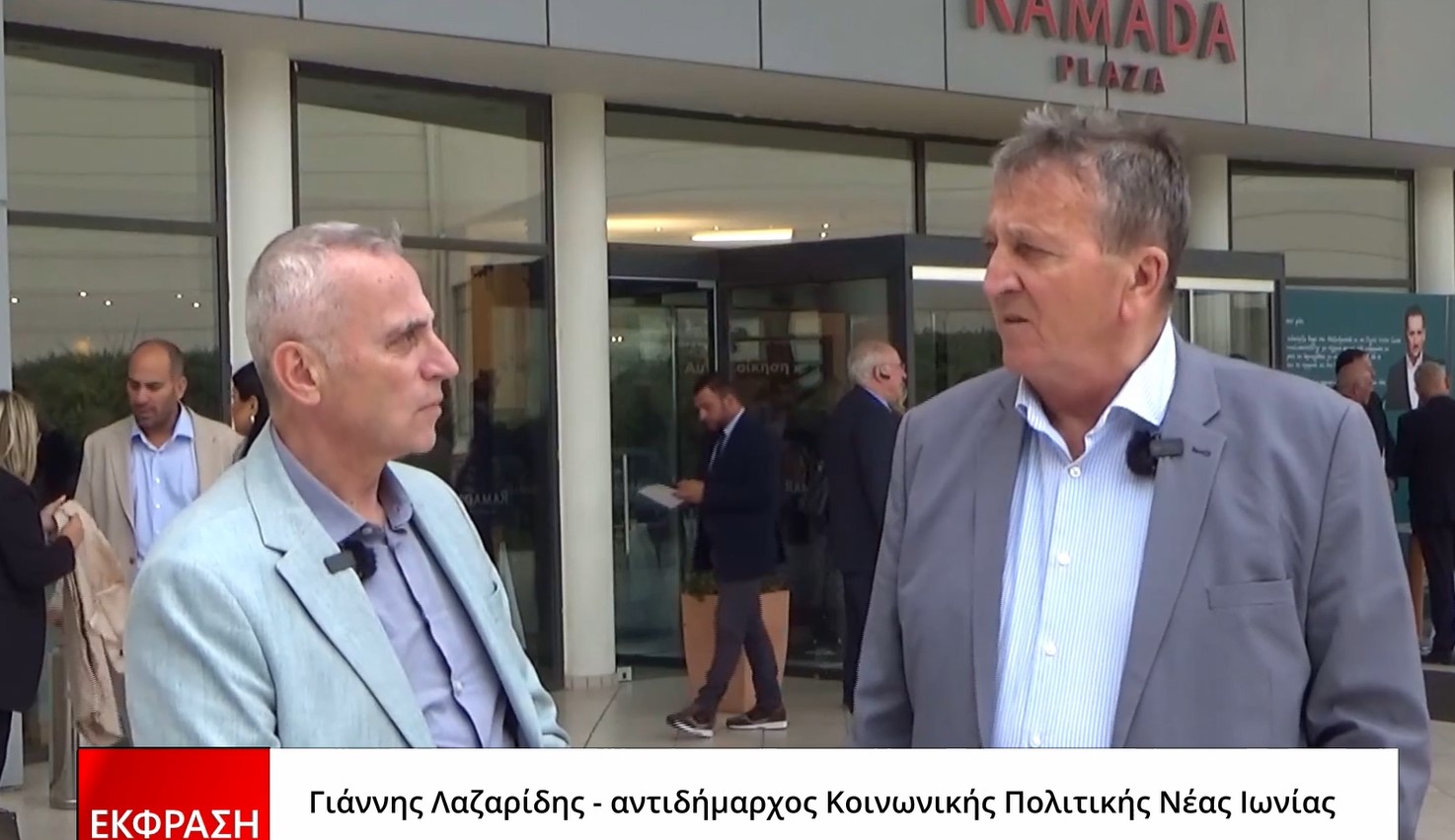 Ο αντιδήμαρχος Κοινωνικής Πολιτικής του Δήμου Νέας Ιωνίας Γ. Λαζαρίδης μιλά στην κάμερα της Έκφρασης, με το Βασίλη Καραβάκο, από το Συνέδριο της ΚΕΔΕ στην Αλεξανδρούπολη