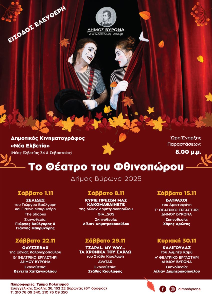 Η παράσταση πραγματοποιείται στο πλαίσιο του Φεστιβάλ Φθινοπώρου του Δήμου Βύρωνα, μια διοργάνωση αφιερωμένη στην τέχνη, τη δημιουργία και τη συμμετοχή της τοπικής κοινότητας.