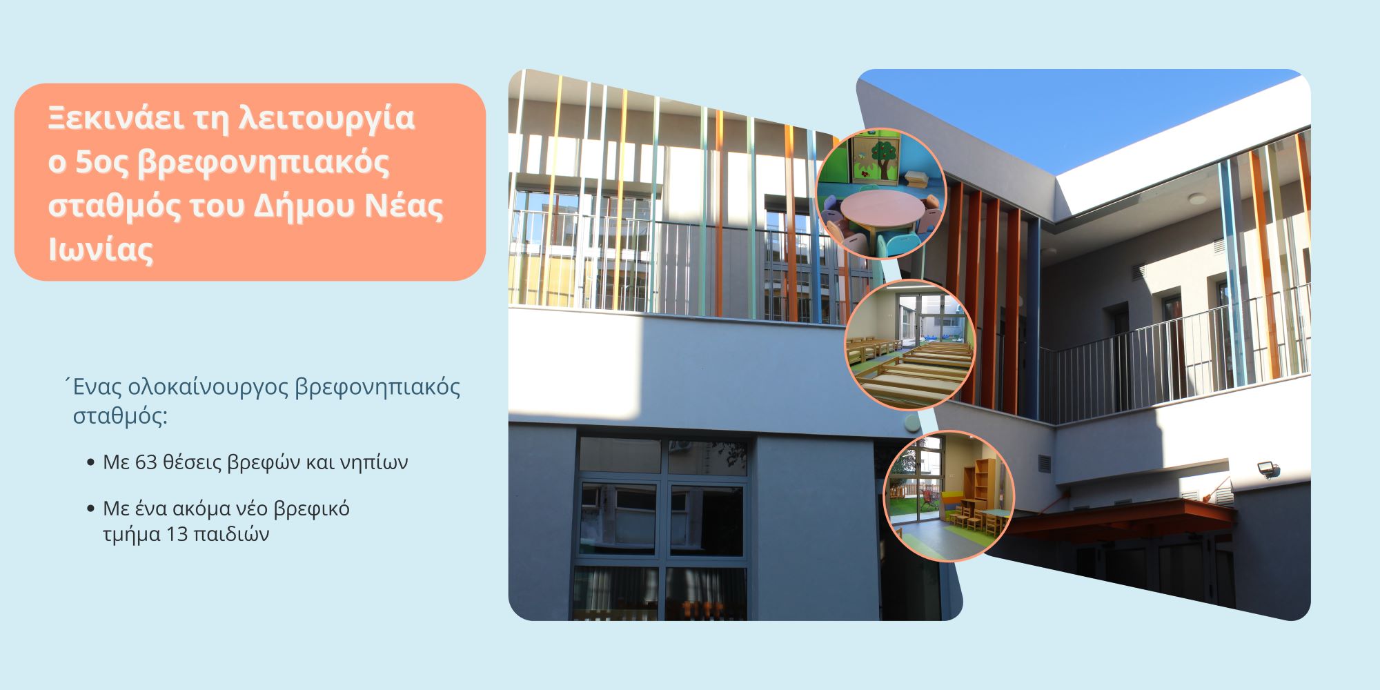 Αγαπητοί συμπολίτες, όταν αναλάβαμε τη διοίκηση του Δήμου βρήκαμε το έργο του 5ου Βρεφονηπιακού Σταθμού απενταγμένο, κάτι που σήμαινε ότι ο Δήμος μας έπρεπε να πληρώσει από ίδιους πόρους περίπου 900.000. Με συντονισμένες και επίμονες ενέργειες εξασφαλίσαμε εκ νέτου τη χρηματοδότηση του έργου. Το αποτέλεσμα το βλέπουμε σήμερα και είναι ένας βρεφονηπιακός σταθμός – στολίδι για τα παιδιά μας!