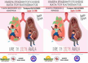 Ο Δήμος Νέας Ιωνίας σε συνεργασία με το ΕΔΔΥΠΠΥ διοργανώνει δυο ημερίδες με ενημέρωση κατά του καπνίσματος. Οι ημερίδες θα πραγματοποιηθούν την Τετάρτη 3 Δεκεμβρίου