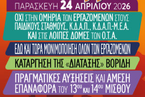 Εκδήλωση με θέμα “Αντιπολεμικό Αντιιμπεριαλιστικό Μέτωπο – Αλληλεγγύη στο Ιράν” διοργανώνει η Λαϊκή Ενότητα – Ανυπότακτη Αριστερά. Η εκδήλωση θα πραγματοποιηθεί την Παρασκευή 3 Απριλίου 2026, στις 7.00′ μ.μ., στον Δημοτικό Πολυχώρο Νέας Σμύρνης ΓΑΛΑΞΙΑΣ. ΚΑΜΙΑ ΣΥΜΜΕΤΟΧΗ ΣΤΟΝ ΠΟΛΕΜΟ ΑΠΕΜΠΛΟΚΗ ΤΗΣ ΧΩΡΑΣ ΤΩΡΑ ΕΞΩ ΟΙ ΒΑΣΕΙΣ – ΕΞΩ ΤΟ ΝΑΤΟ Ομιλητές: