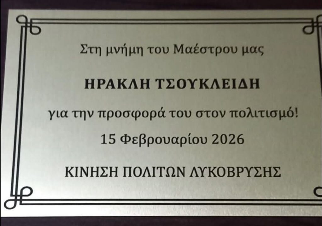 Πραγματοποιήθηκε την Κυριακή, 15 Φεβρουαρίου 2026, στην αίθουσα “Μελίνα Μερκούρη” στο Ηλιακό Χωριό, μέσα σε κλίμα συγκίνησης η εκδήλωση της Κίνησης Πολιτών Λυκόβρυσης προς τιμή και μνήμη του μαέστρου της χορωδίας της Κίνησης, Ηρακλή Τσουκλείδη, ο οποίος έφυγε πριν ένα χρόνο από τη ζωή.