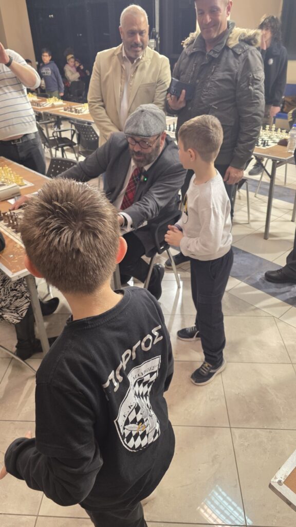 Ο Δήμαρχος Περάματος Γιάννης Λαγουδάκος κάθισε μαζί με τους μαθητές και δέχτηκε μαθήματα σκακιού από τους εκπαιδευτές, υποκλίθηκε όμως στις ικανότητες και τη φιλομάθεια των μικρών μαθητών, που ήδη, όπως είπε, μαθαίνουν με ταχείς ρυθμούς .