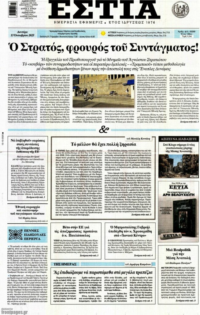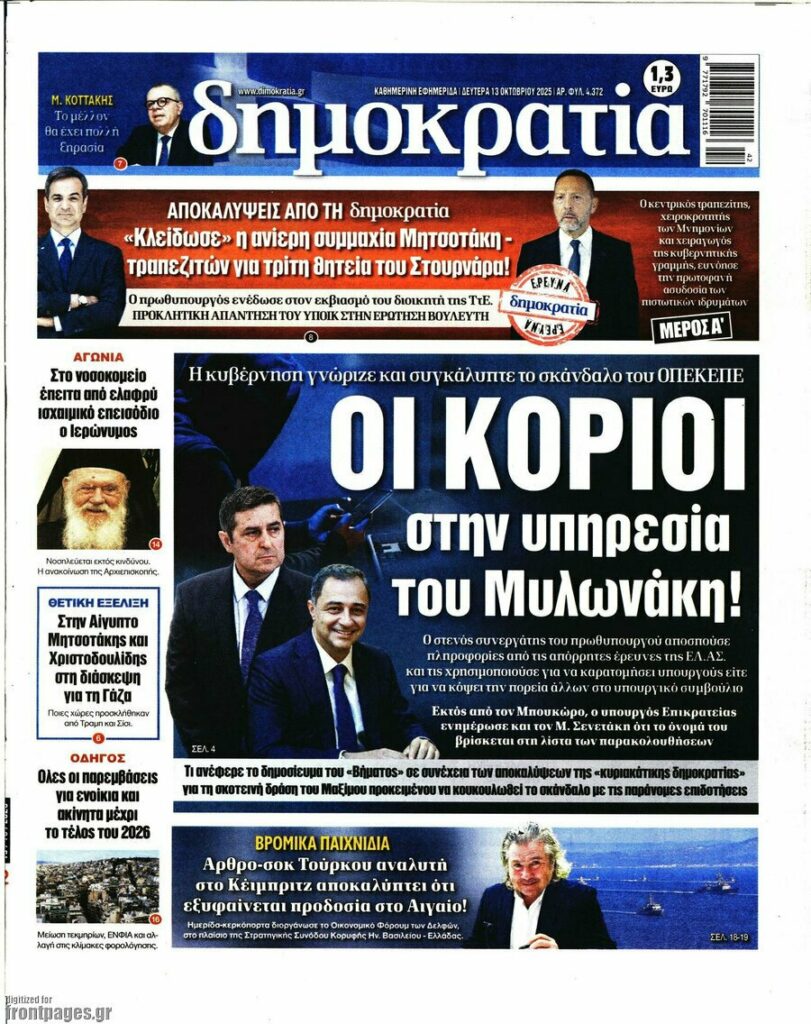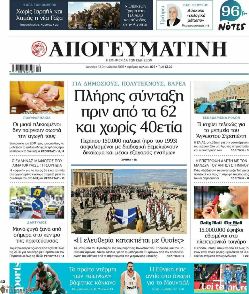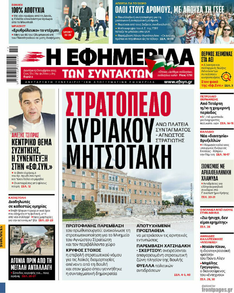 Δείτε τα σημερινά πρωτοσέλιδα των εφημερίδων