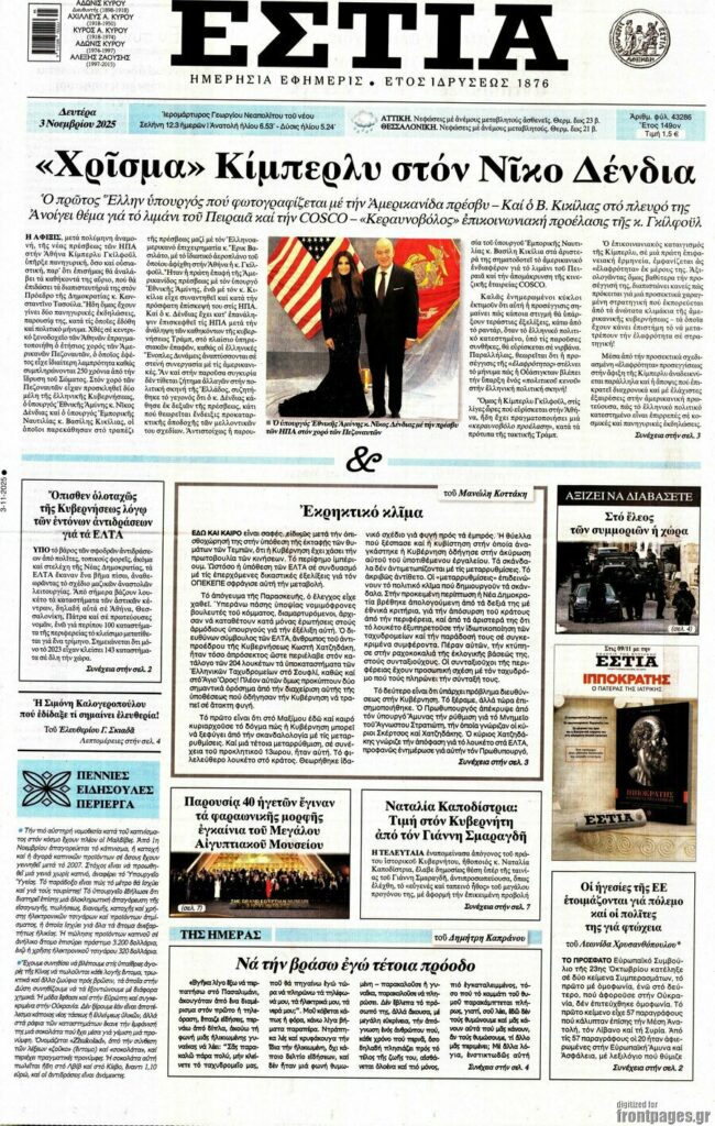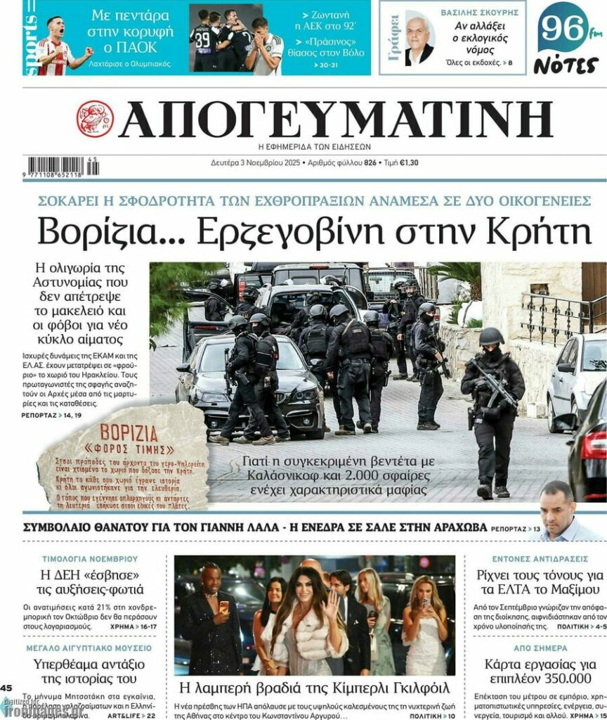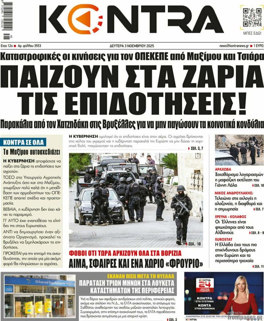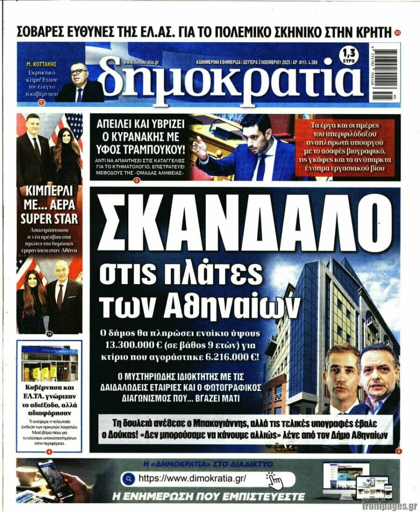 Πρωτοσέλιδα εφημερίδων (3/11/2025) - EKFRASI.net