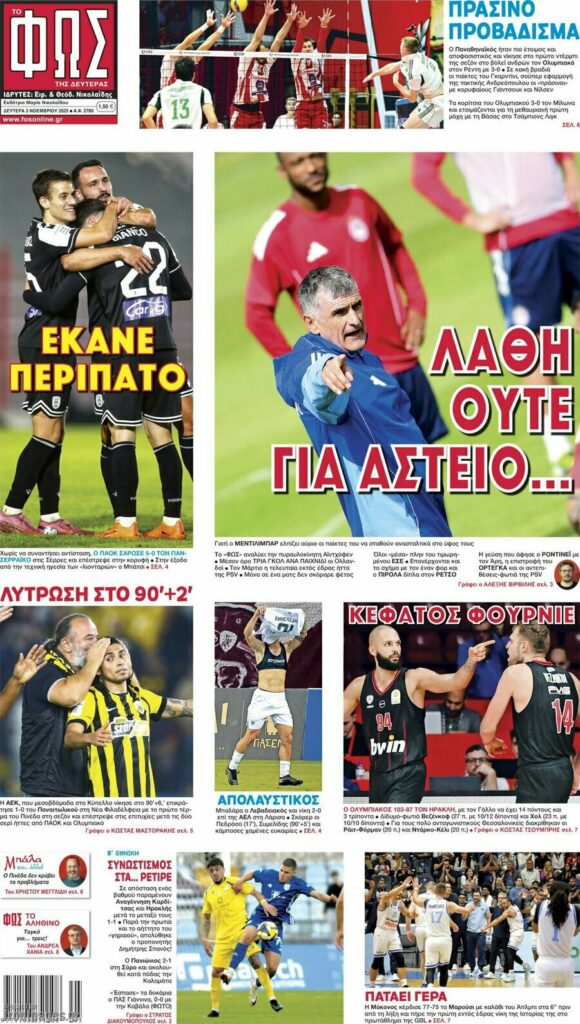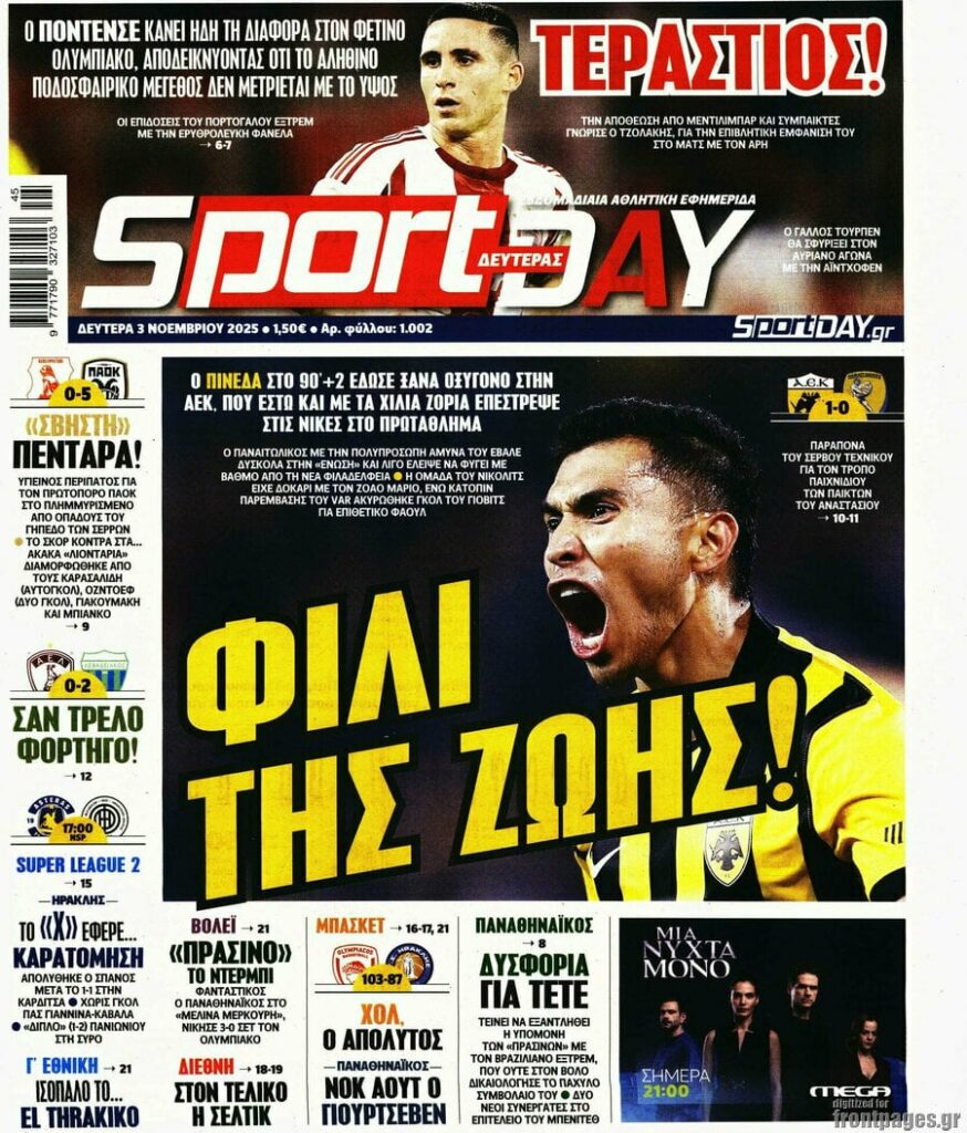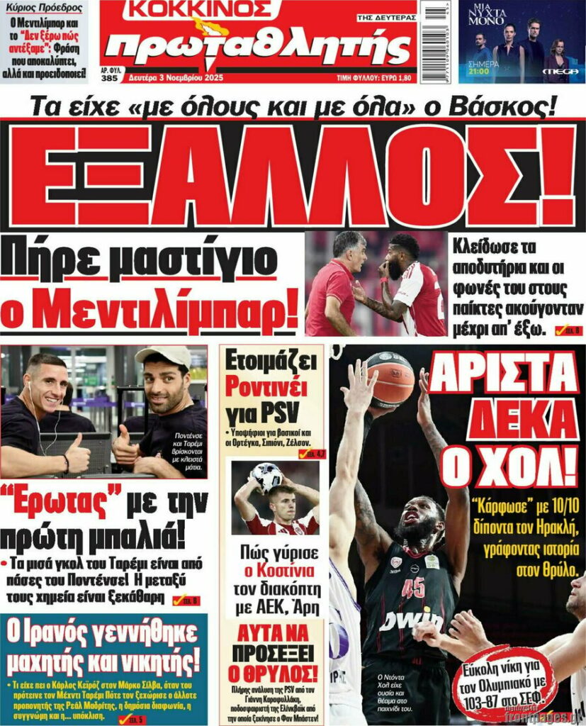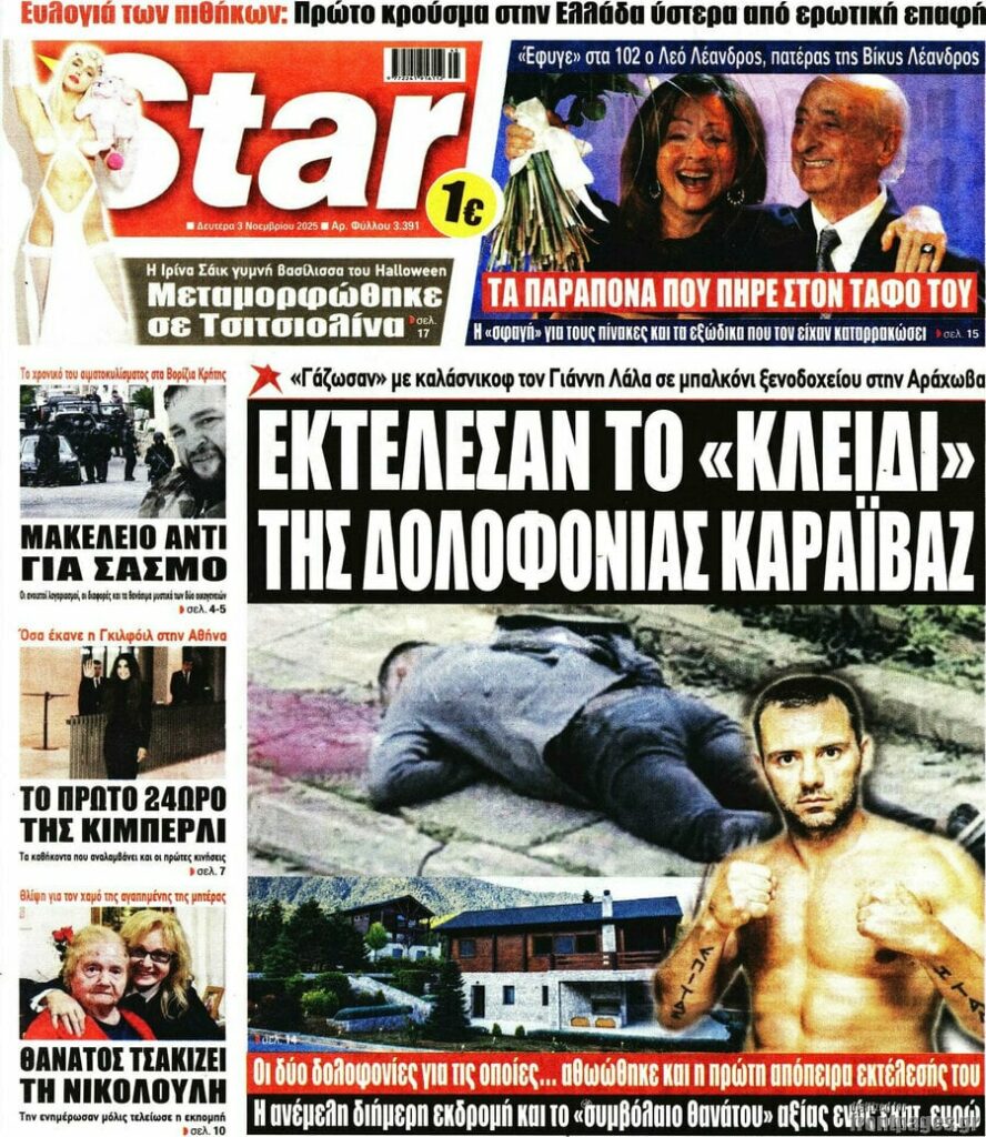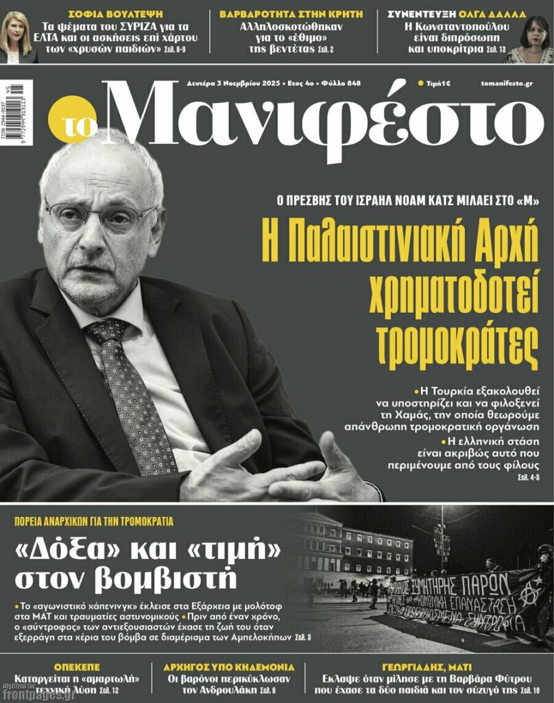 Πρωτοσέλιδα εφημερίδων (3/11/2025) - EKFRASI.net
