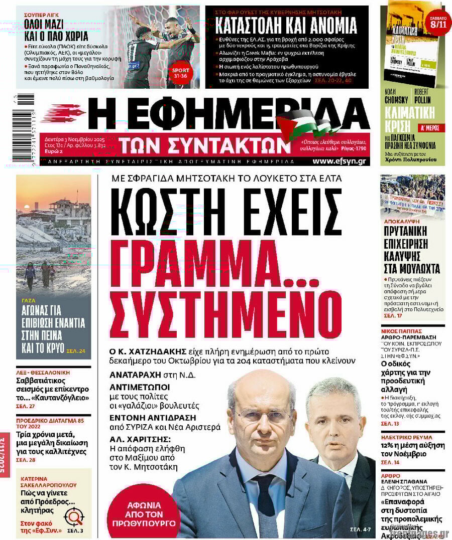 Πρωτοσέλιδα εφημερίδων (3/11/2025)