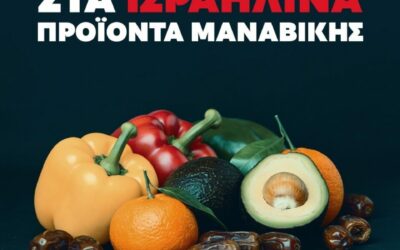 Σε μποϋκοτάζ ισραηλινών αγροτικών προϊόντων καλεί το BDS Greece με νέα του καμπάνια. “Μην ψωνίζετε Βόμβες και Συστήματα Παρακολούθησης στο σούπερ μάρκετ”, αναφέρει ο ευρηματικός αλλά και εύγλωττος τίτλος της καμπάνιας, καθώς τα χρήματα από την πώληση αγροτικών και άλλων προϊόντων από το Ισραήλ χρηματοδοτούν την πολεμική μηχανή του καθεστώτος, όπως τονίζεται χαρακτηριστικά. Μιας πολεμικής … Συνεχίστε να διαβάζετε το Σε μποϋκοτάζ ισραηλινών αγροτικών προϊόντων καλεί το BDS Greece.